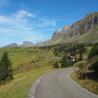9.5 km | 1230 Hm: Berghaus Malbun: Bei Asphaltgabelung – beide Wege führen zum Berghaus Malbun – links halten. Nach 300 m links unten bleiben. Man verläßt hier den Weg zum Berghaus Malbun. Nun über Farboden Untersäss (km 10,8/Asphalt Ende) und Malschuel Untersäss aufwärts zum Ende des befahrbaren Wegs beim Obersäss. (Ab dem Malschuel Untersäss wird der Weg steil und ruppig.)